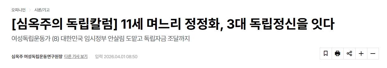 [±Â¸ð´× ÃæÃ»]<½É¿ÁÁÖÀÇ µ¶¸³Ä®·³> 11¼¼ ¸ç´À¸® Á¤Á¤È, 3´ë µ¶¸³Á¤½ÅÀ» ÀÕ´Ù |